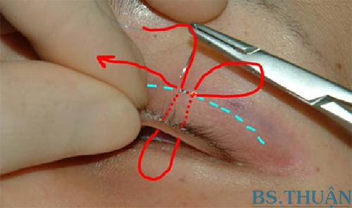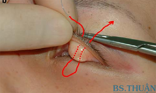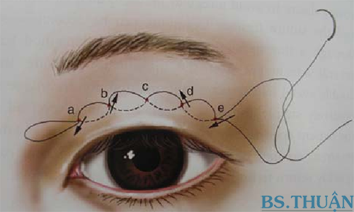 Kỹ thuật nhấn mí, bấm mí hay tạo mắt hai mí không phẫu thuật với mũi khâu vắt liên tục.