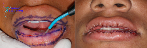 Hình ảnh minh họa kỹ thuật thu nhỏ môi hay làm mỏng môi dày.